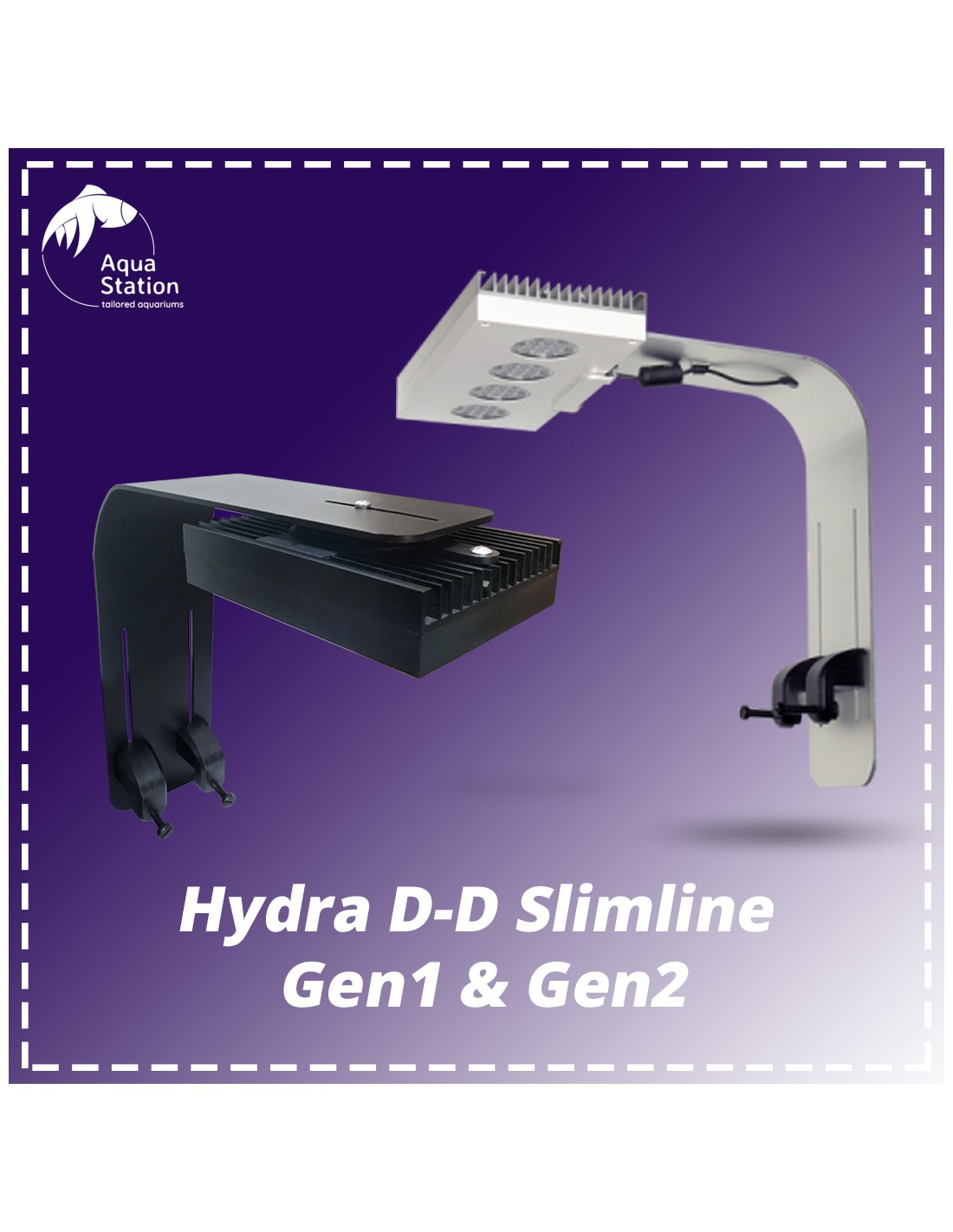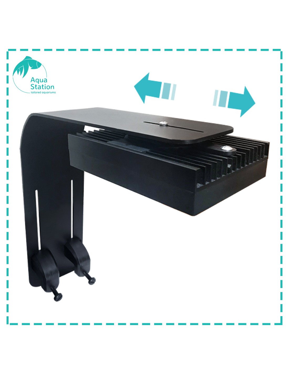 D-D modificou o design do suporte Slimline para prender diretamente na parte superior das luzes. Com a versão Gen 2, agora pode deslizar a luz para trás e para frente para lidar com diferentes larguras de tanque e também girar para que as luzes possam ser posicionadas ao longo do comprimento ou ao longo da largura do aquário.