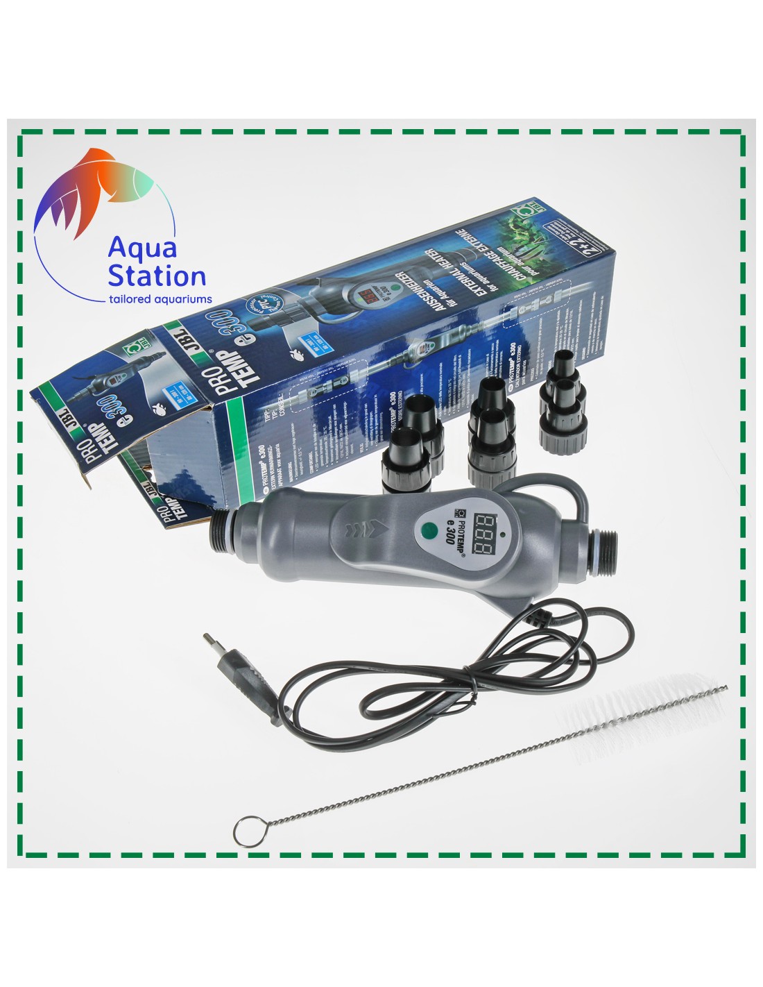 Com a instalação no circuito do filtro consegue-se uma distribuição muito homogénea da temperatura da água no aquário com uma precisão de medição de +/- 0,5 °C, e um intervalo de comutação de 1,0 °C.