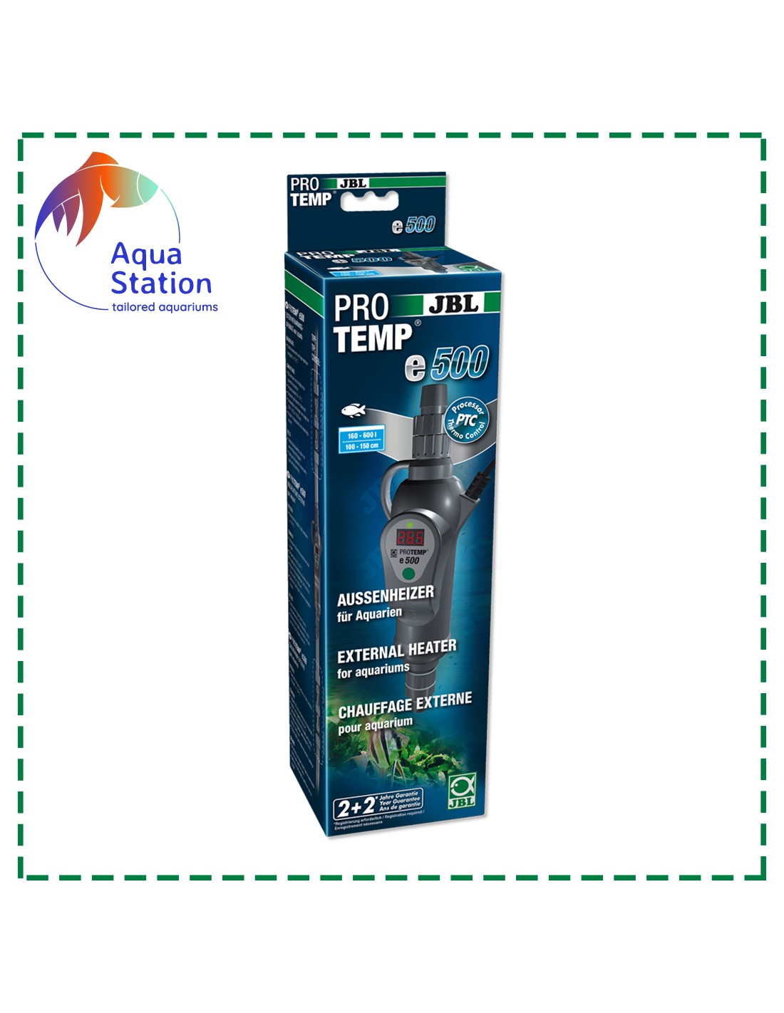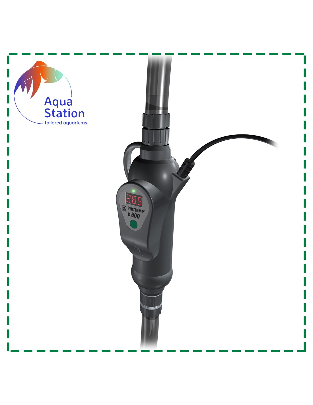 Com a instalação no circuito do filtro consegue-se uma distribuição muito homogénea da temperatura da água no aquário com uma precisão de medição de +/- 0,5 °C, e um intervalo de comutação de 1,0 °C.
