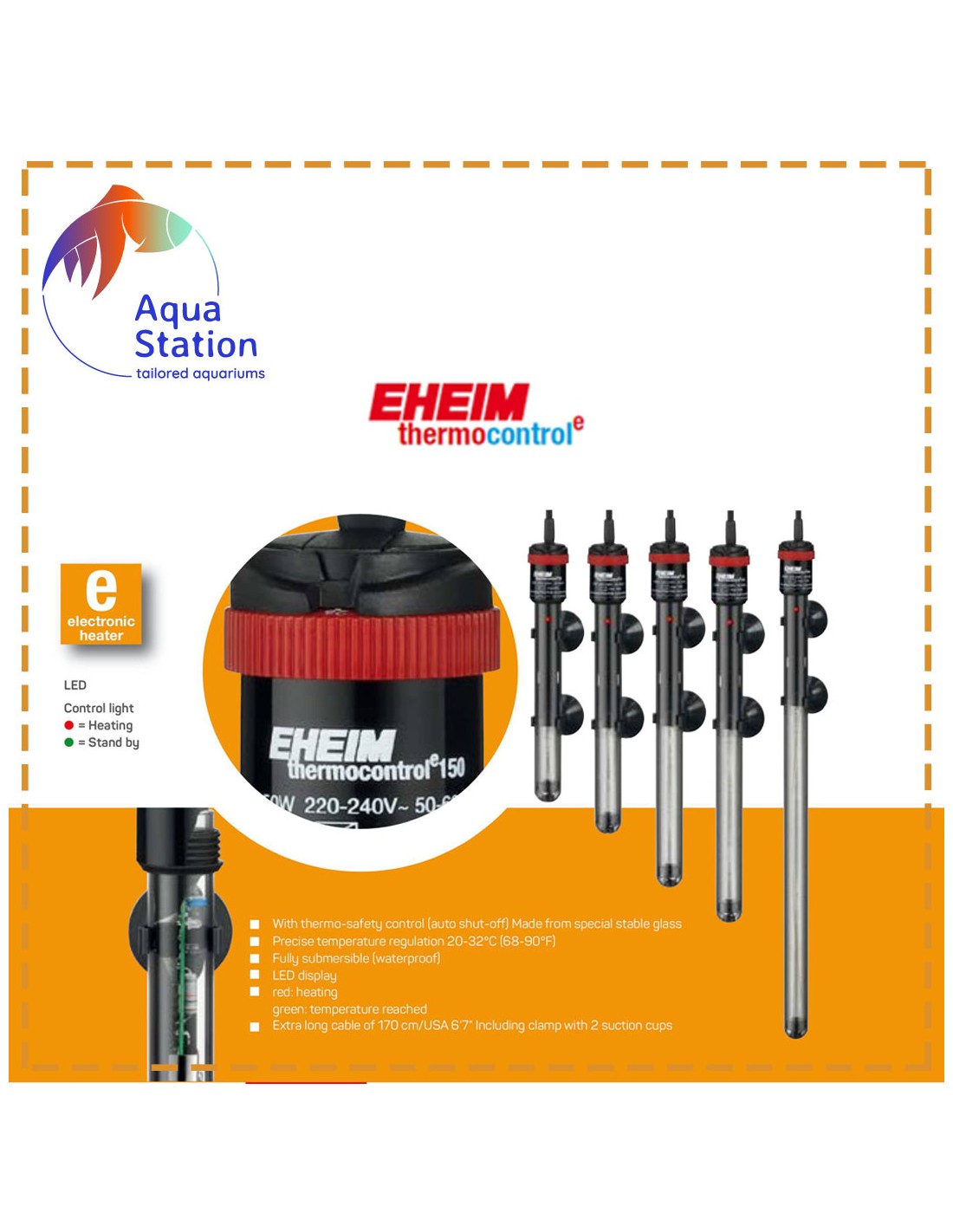 Como normalmente as coisas mais simples costumam ser as melhores opções, o aquecedor EHEIM é mesmo assim. Basta prender no aquário e ligar à tomada, não precisa de ser preocupar com mais nada. O princípio do termostato mantém-se há décadas, no entanto a EHEIM tem evoluído e tornou este dispositivo um elemento de última geração. O termostato EHEIM é revestido em vidro, desenvolvido em laboratório, com uma superfície de aquecimento maior e que permite uma precisão mais rigorosa. Nem mesmo as flutuações extremas de temperatura, como pode acontecer nas trocas de água, afetam o vidro deste termostato resistente.
