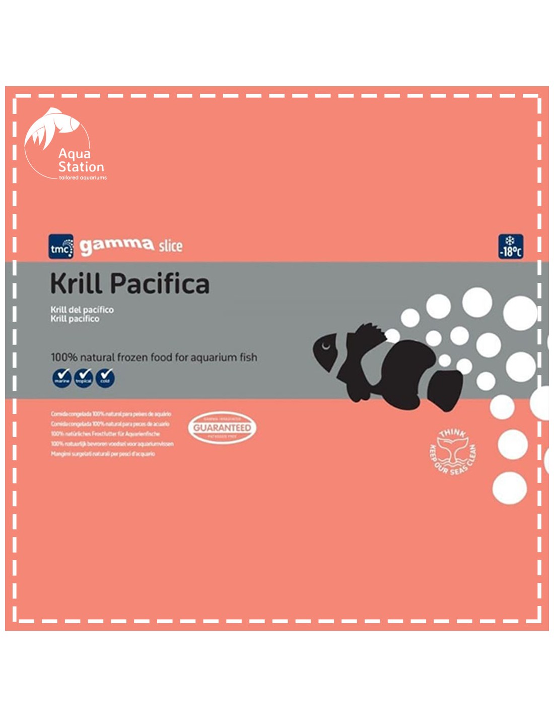 - Gama irradiada. Elimina completamente qualquer risco de surgir parasitas ou bactérias prejudiciais para o seu aquário, e também significa que o alimento é completamente seguro de armazenar no seu frigorifico.