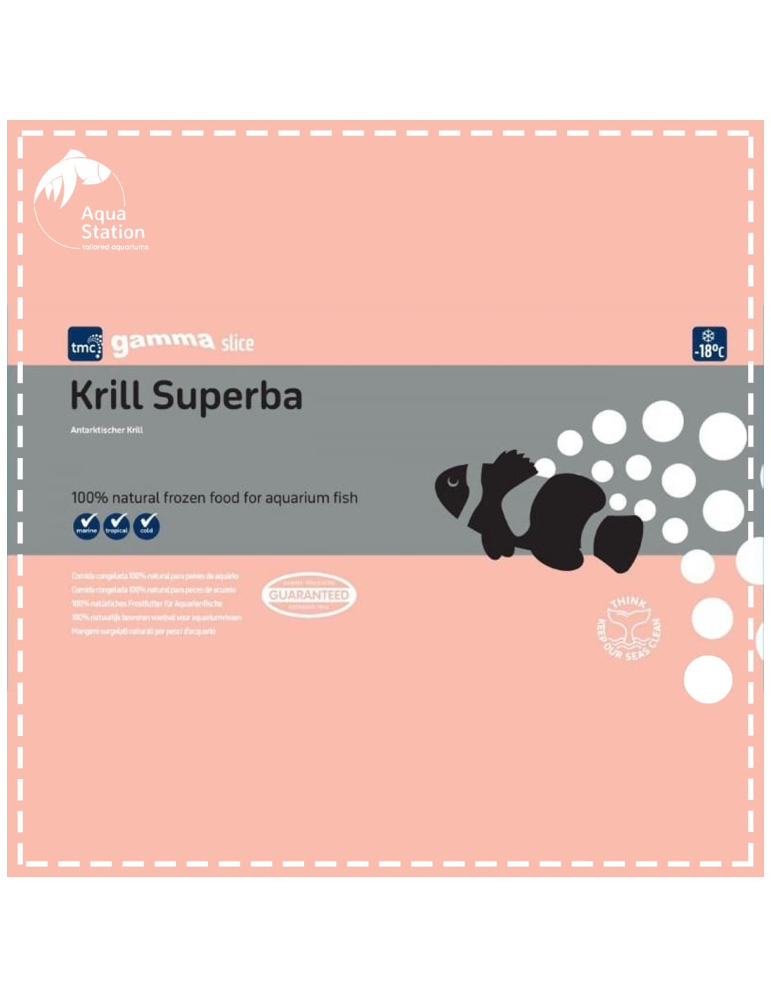 - Gama irradiada. Elimina completamente qualquer risco de surgir parasitas ou bactérias prejudiciais para o seu aquário, e também significa que o alimento é completamente seguro de armazenar no seu frigorifico.