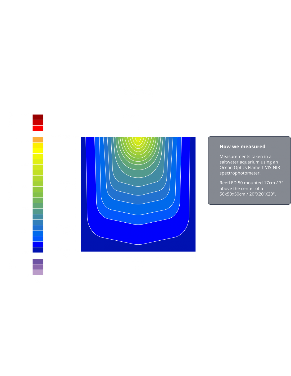 As luzes ReefLED também incluem lentes ocas de vidro ótico que garantem uma propagação de luz homogênea. Os valores PAR desta iluminação garantem um aquário sem pontos quentes ou áreas com luz insuficiente.