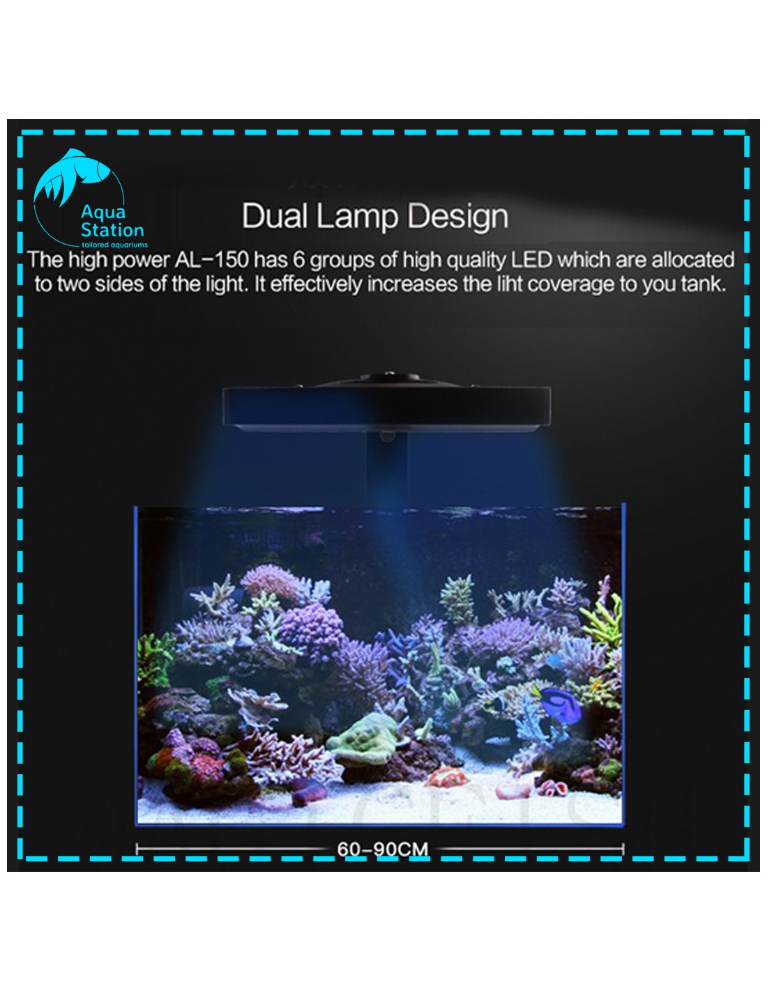 Módulo de led de 80W/ 150w. com controlador wi-fi, funciona a 24V, inclui suporte Novo para colocação na borda do aquário.