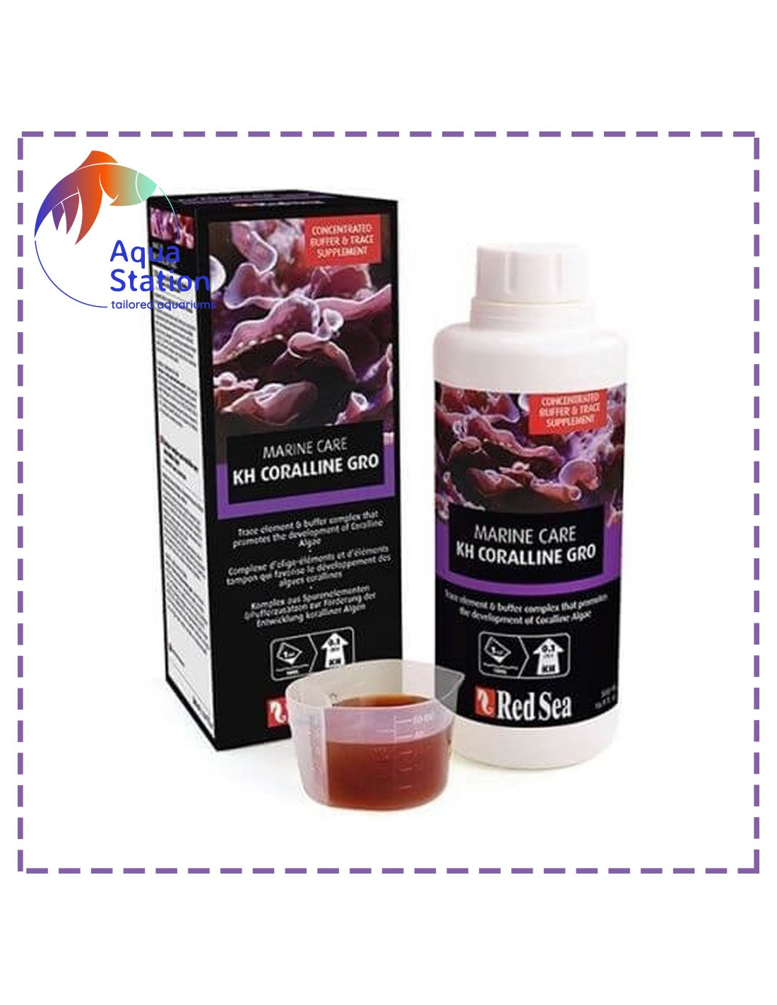 Oligoelementos e complexo tampão (KH) que promovem o crescimento e o desenvolvimento das algas cálcio. KH Coralline Gro é uma mistura de tampões, potássio e oligoelementos como o ferro, compostos de acordo com a proporção que as algas calcárias absorvem. KH Coralline Gro deve ser o substituto do Reef Foundation B (buffer) durante a construção de um novo aquário e como base para um aquário 'somente para peixes' ou de coral mole. A quantidade a ser adicionada é determinada com base no valor KH medido. 1 ml por 100 litros aumenta o KH em 0,1 dKH (0,03 meg / l)